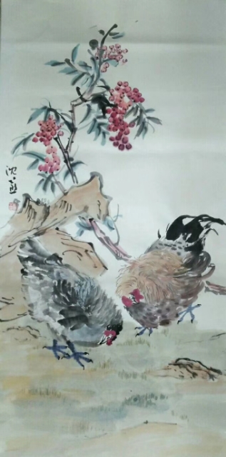 画面中,两头牛的造型生动,姿态自然。沈燕运用了精细的线条勾勒牛身,通过淡墨与淡彩的和谐运用,使牛身的立体感和质感得以凸显。特别是牛毛的质感,通过墨色的深浅变化和笔触的精妙运用,表现得细腻而富有层次。牛的眼神温和,体态悠闲,传递出一种宁静致远的田园生活氛围。2021-03-15 -